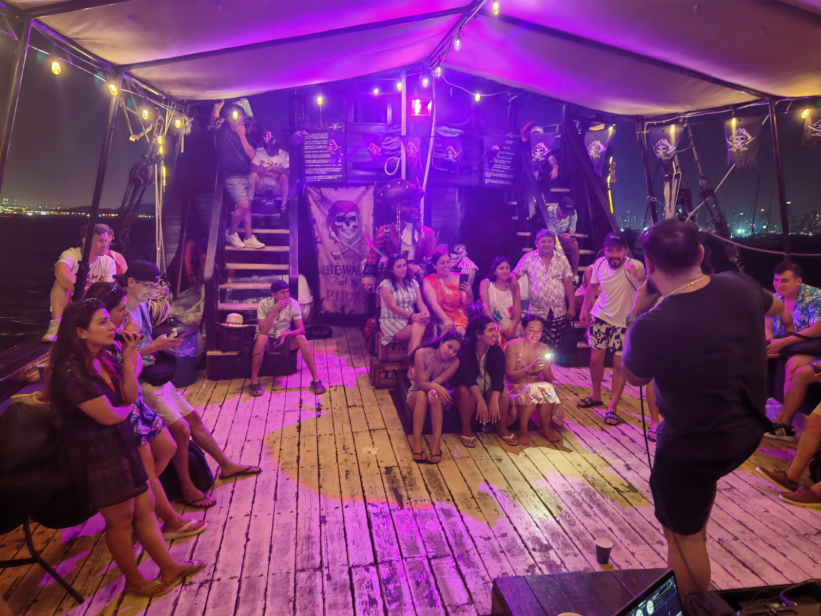 With a maximum capacity of 130 guests, this pirate boat in Panama is ideal for birthdays, weddings, bachelor or bachelorette parties, graduations, corporate events, family gatherings, and private celebrations. Its spacious layout allows large groups to enjoy the trip comfortably, offering the perfect balance of fun, comfort, and a unique theme that makes any event feel special.