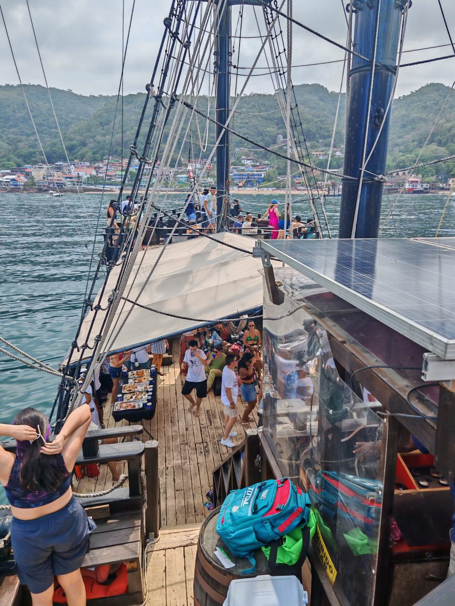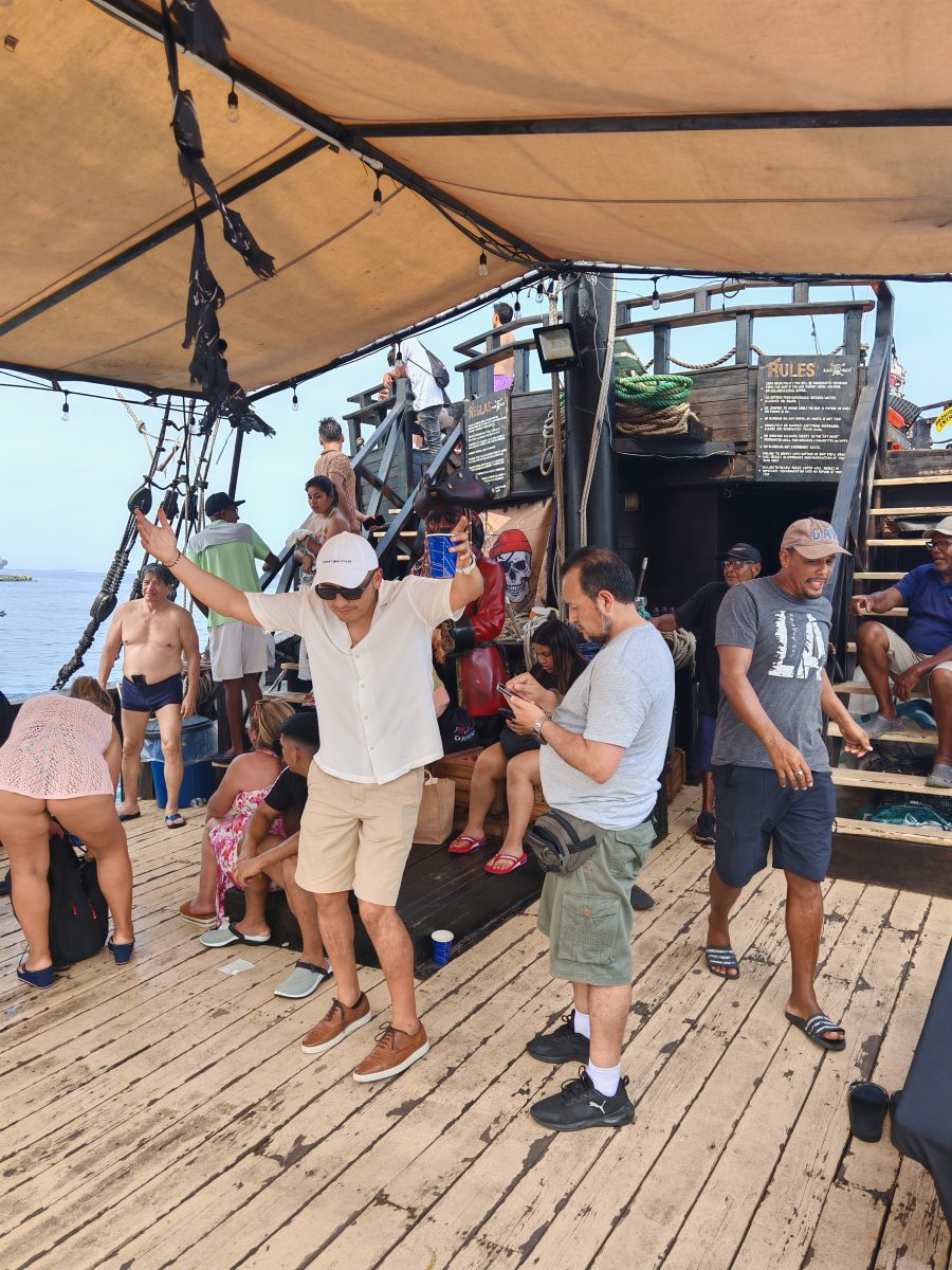 The tour departs from the public dock at Isla Perico starting at 11:00 a.m., offering a scenic journey through the bay with beautiful views of the coastline and the Panamanian Pacific Ocean. During the cruise, guests can enjoy the sea breeze, music, and the unique energy that only this themed boat can offer.
