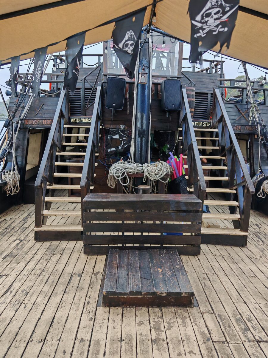 From the moment you step on board, the adventure begins. The pirate-themed décor, flags waving in the wind, and details inspired by old corsair vessels create a unique setting for an unforgettable day at sea.
